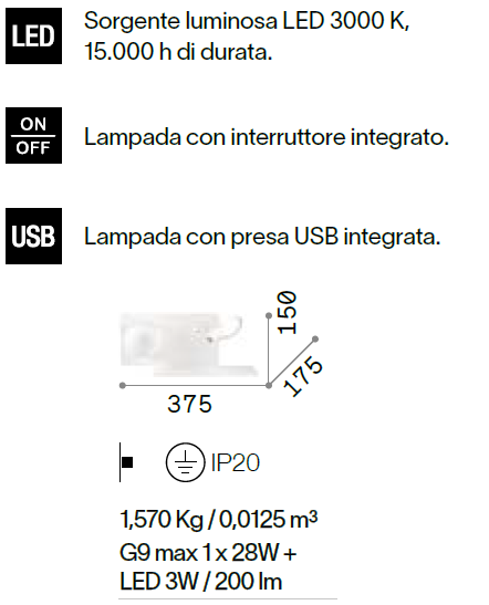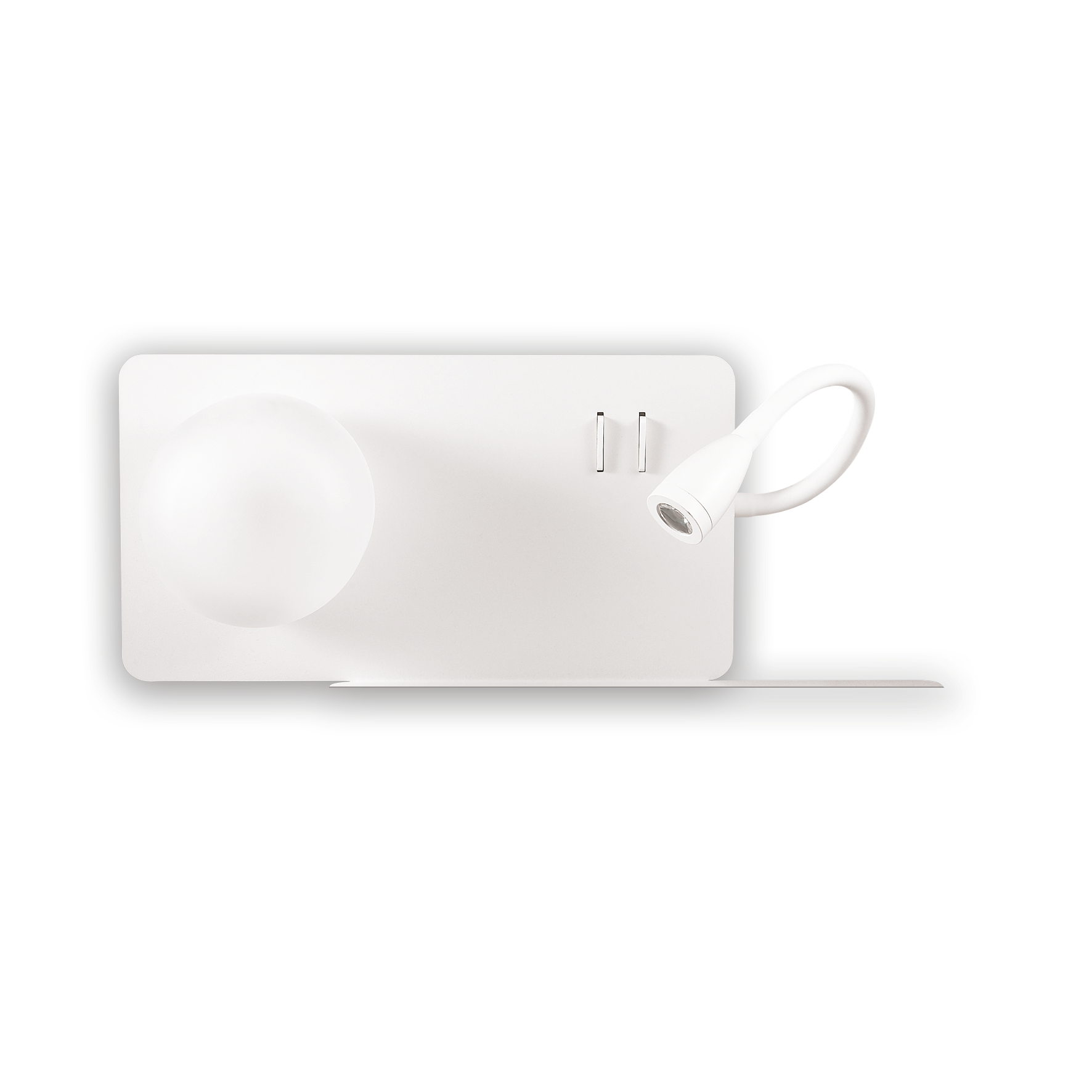 Lampada da parete BOOK-2 AP bianco con braccio a destra di Ideal Lux con montatura metallica verniciata a polveri. Diffusore in vetro satinato. Braccio flessibile gommato con LED. Doppio interruttore. Presa USB.  Sorgente luminosa LED inclusa. Lampada con interruttore integrato. Lampada con presa USB integrata. Lampadina esclusa.