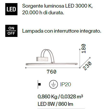 • mm: L. 760 x P. 230 x H. 180