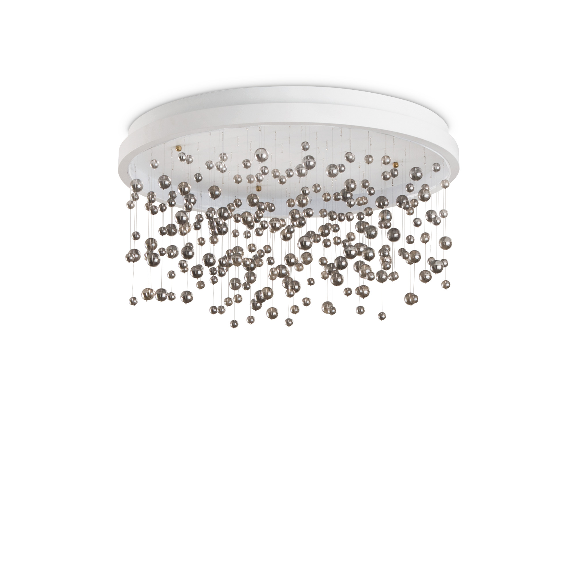 Lampada da soffitto ARMONY PL D75 di Ideal Lux con montatura in metallo verniciato opaco. Elementi decorativi pendenti in filo metallico con perle di vetro trasparente cromato. Finiture: bianco. Sorgente luminosa LED inclusa.