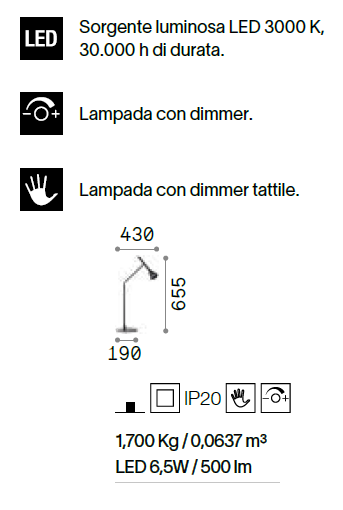 Lampada da tavolo DIESIS TL nero di Ideal Lux con montatura in metallo verniciato a polveri o placcato. Diffusore orientabile in rotazione e inclinazione. Cavo in pvc con interruttore. Colore nero. Sorgente luminosa LED inclusa. Lampada con dimmer, lampada con dimmer tattile.