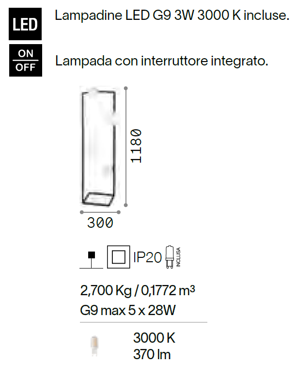mm: L. 300 x P. 300 x H. 1180