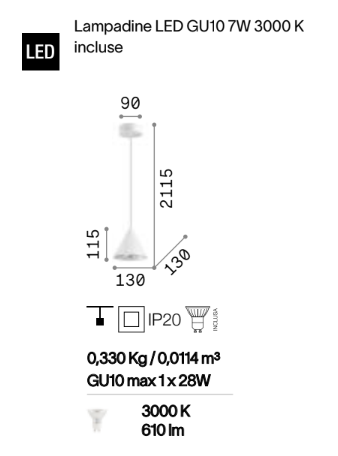 mm:  Ø 130 x  H. paralume 115 x H. 2115
