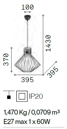 mm: L 395 x 395 x H. paralume 370 x H. 1430