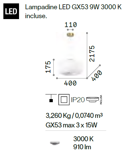 mm: Ø 400 x H. paralume 175 x H. 2175