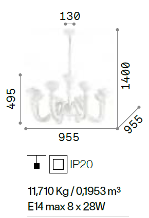 • mm: Ø 955 x H. paralume 495 x H. 1400