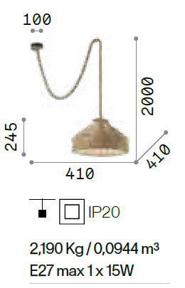 • mm: Ø 410 x H. paralume 245 x H. 2000