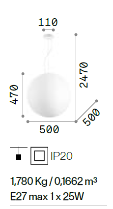 mm: Ø 500 x  H. 2470  x H. paralume 470
