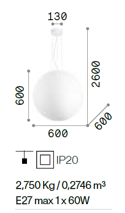 mm: Ø 600 x  H. 2600  x H. paralume 600