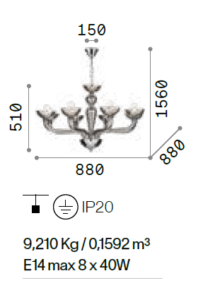 mm: Ø 880 x H. 1560 x H. paralume 510