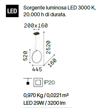 mm: L. 445 x P. 160 x H. 2520 x H. paralume 520