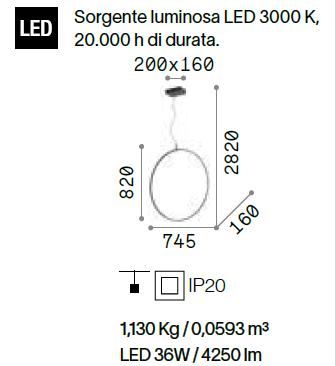 mm: L. 745 x P. 160 x H. 2820 x H. paralume 820