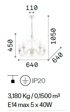 • mm: Ø 640 x H. 1050 x H. paralume 450