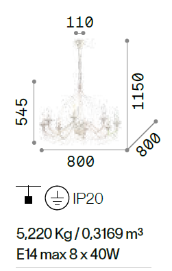 • mm: Ø 800 x H. 1150 x H. paralume 545
