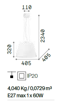 mm: Ø 405 x H. paralume 320 x H. totale 2340