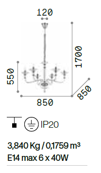 mm: Ø 850 x H. paralume 550 x H. 1700