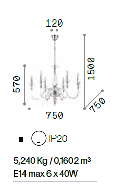 Lampadario a sospensione DOGE SP6 trasparente di Ideal Lux. Lampadario in vetro trasparente soffiato e lavorato a mano. Montatura e dettagli in metallo rifinito in cromo. Lampadine escluse.
