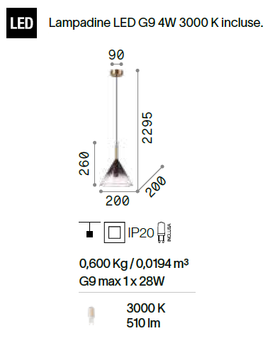 mm: Ø 200 x H. paralume 260 x H. 2295