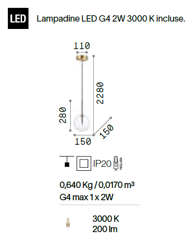mm: Ø 150 x H. paralume 280 x H. 2280
