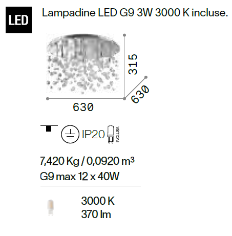 Lampadario da soffitto NEVE PL12 cromo di Ideal Lux