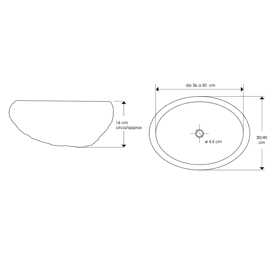 Lavandino Joya Large di Cipì in pietra di fiume naturale. Ogni pezzo è unico, servizio di selezione fotografica preordine. Questi lavandini nascono da sassi  di fiume scavati e levigati. il colore esterno varia su ciascun pezzo, la levigatura del bordo ha dimensioni variabili che si adattano alla sagoma della pietra originale. L'interno può presentare variegaturem occhi di pernice o sfumature proprie della materia ed, ovviamente, ogni forma è unica e differente.