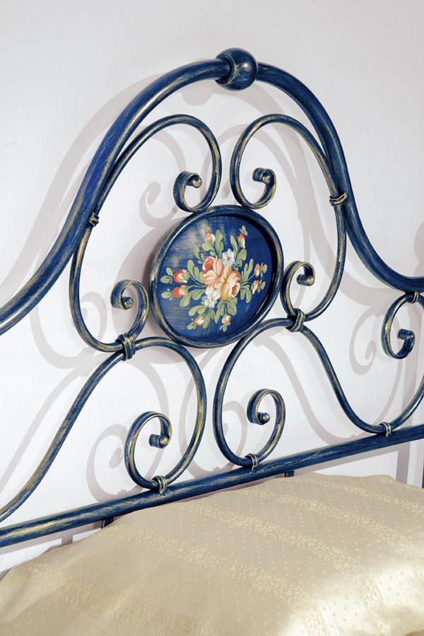 Letto a una piazza e mezza Emmy in ferro battuto. Letto che richiama lo stile classico. Interamente in ferro battuto lavorato a mano artigianalmente. Caratterizzato dal medaglione sulla testata con dipinta una rosa a mano. Disponibile in diverse versioni e in numerose colorazioni a scelta. SU RICHIESTA E' POSSIBILE PREVENTIVARE IL LETTO IN DIMENSIONI FUORI MISURA
