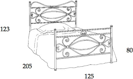 Letto a una piazza e mezza Nota in ferro battuto prodotto artigianalmente