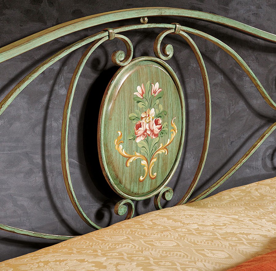 Letto matrimoniale Margherita in ferro battuto. Letto elegante e dallo stile intramontabile dei letti in ferro battuto. Questo letto è caratterizzato da un medaglione ovale con disegnata una rosa interamente a mano. Disponibile in diverse versioni e in numerose colorazioni a scelta. SU RICHIESTA E' POSSIBILE PREVENTIVARE IL LETTO IN DIMENSIONI FUORI MISURA
