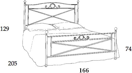 Il letto si compone di testata, pediera alta decorata e longheroni laterali con supporto per la rete già incluso h.31 cm. (RETE NON INCLUSA)