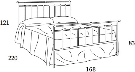 Il letto si compone di testata, pediera alta decorata e longheroni laterali con supporto per la rete già incluso h.31 cm. (RETE NON INCLUSA)
