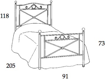 Il letto si compone di testata, pediera alta decorata e longheroni laterali con supporto per la rete già incluso h.31 cm. (RETE NON INCLUSA)