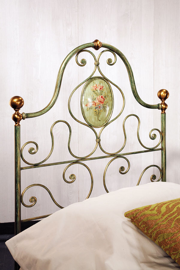 Letto singolo Regina in ferro battuto. Un letto dall'aspetto importante e caratteristico. Un letto classico che che sarà il punto centrale della vostra camera da letto. Particolare attenzione va dedicata al medaglione che troviamo sulla testata con il disegno di una rosa fatto a mano. La cosa si ripete anche sulla pediera nella versione del letto testata e pediera. Disponibile in diverse versioni e in numerose colorazioni a scelta. SU RICHIESTA E' POSSIBILE PREVENTIVARE IL LETTO IN DIMENSIONI FUORI MISURA