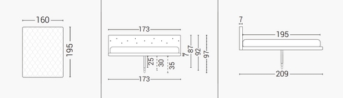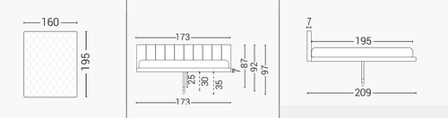- Misure complessive del letto cm: Larg.173 x Lung.209 x H.87/92/97
