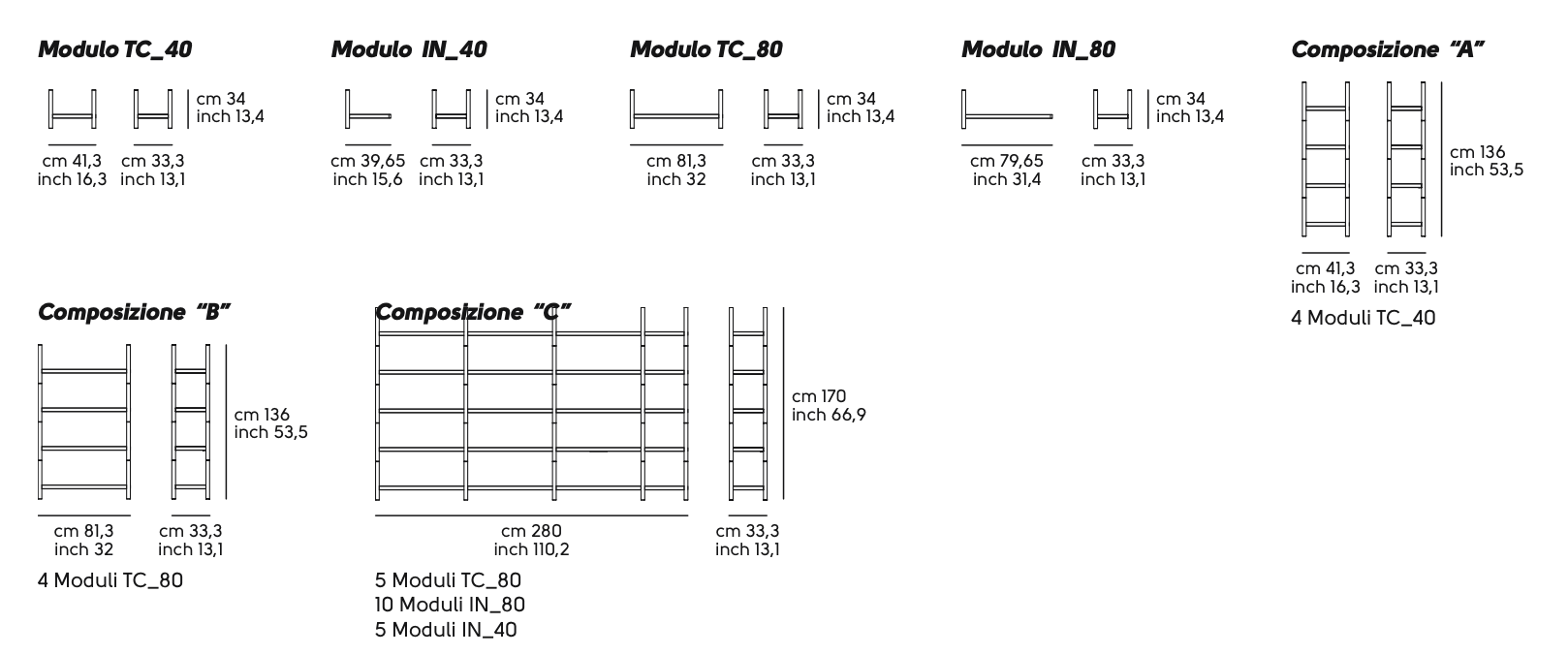 Possibilità di combinare moduli con larghezza 40 cm o 80 cm.