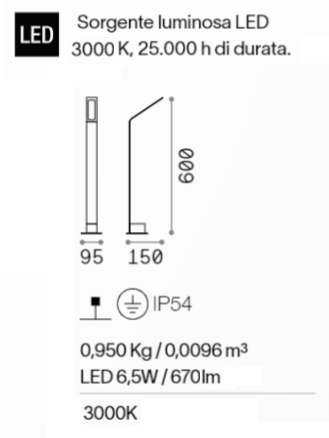 Luce da esterno AGOS PT H60 3000K nero di Ideal Lux con corpo luce in alluminio pressofuso verniciato a polveri. Diffusore in acrilico trasparente satinato. Colore nero. Sorgente luminosa LED 3000 K inclusa.