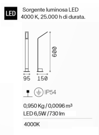 Luce da esterno AGOS PT H60 4000K coffee di Ideal Lux con corpo luce in alluminio pressofuso verniciato a polveri. Diffusore in acrilico trasparente satinato. Colore coffee. Sorgente luminosa LED 4000K inclusa.