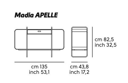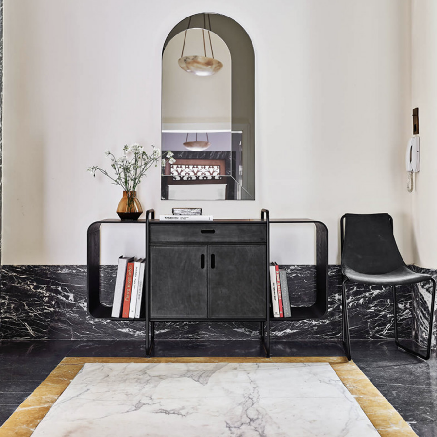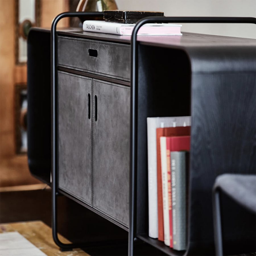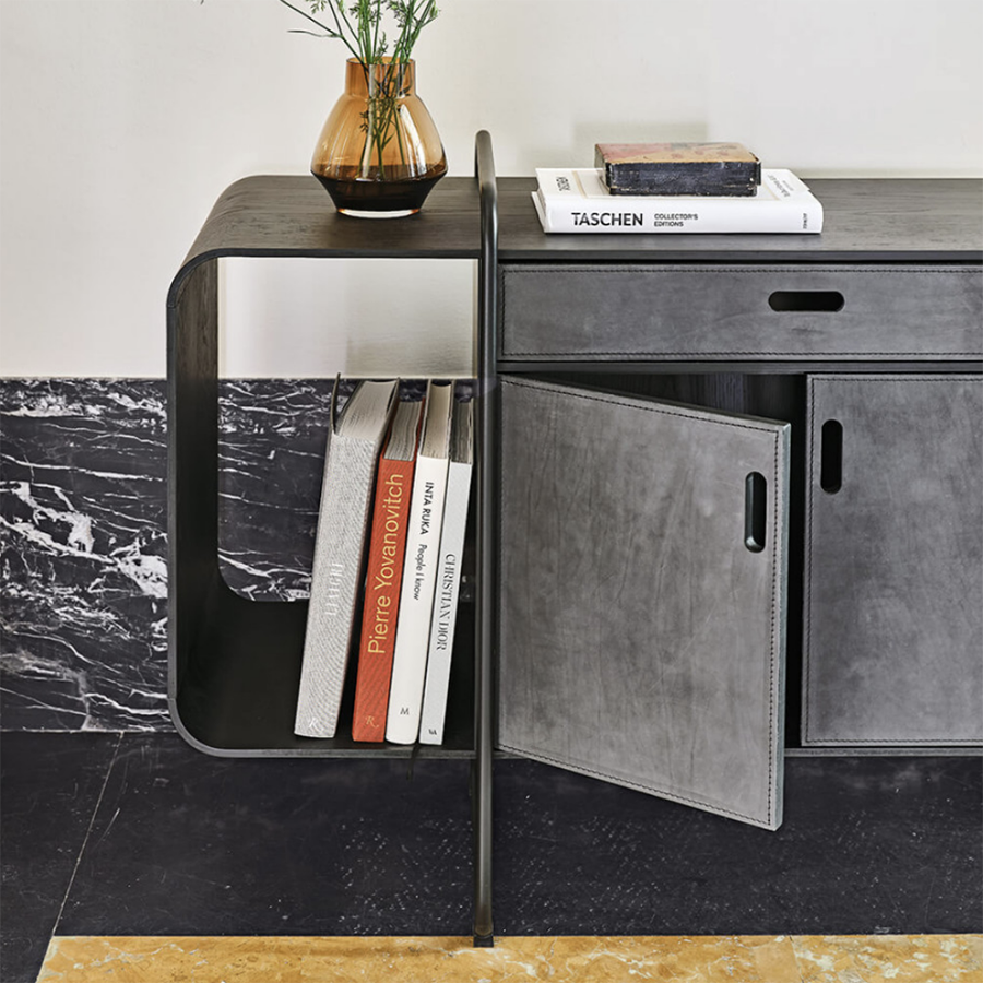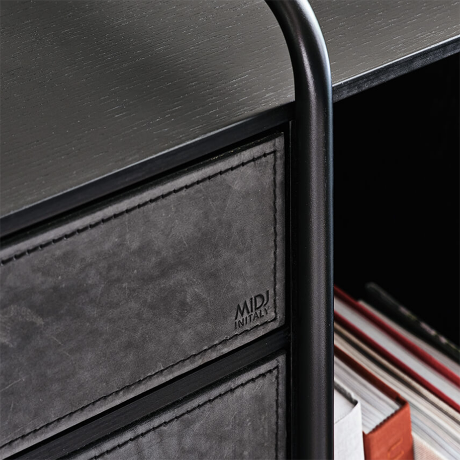 Madia Apelle in metallo e legno con ante e cassetto in cuoio di Midj