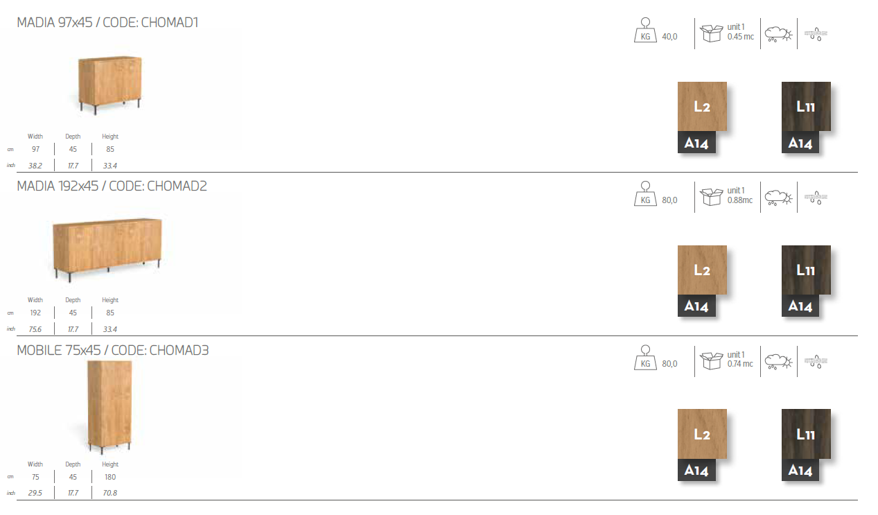 CHOMAD2 cm: L. 192 x P. 45 x H. 85