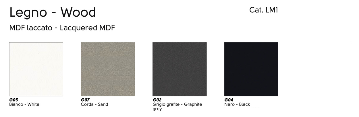La madia Lea è disponibile in due versioni: con altezza 55 cm oppure 73 cm. La versione con altezza 55 cm prevede una mensola a giorno con ripiano in vetro.
