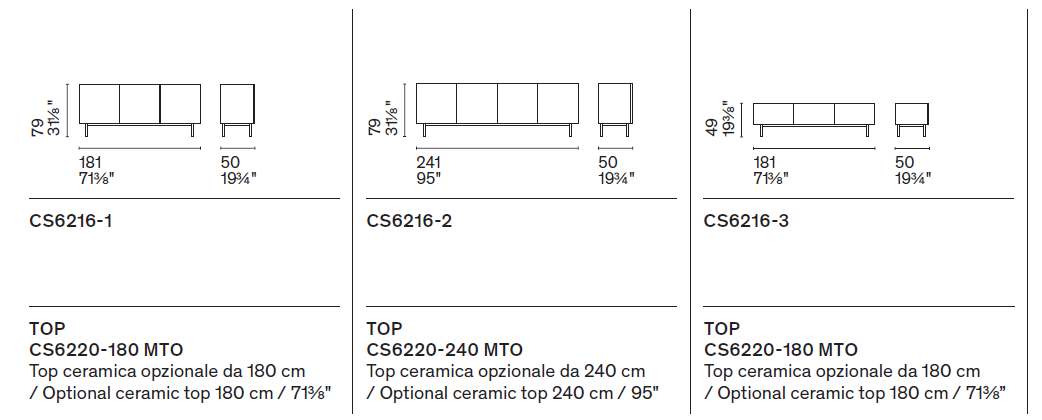 Non tutte le finiture sono disponibili per tutte le dimensioni