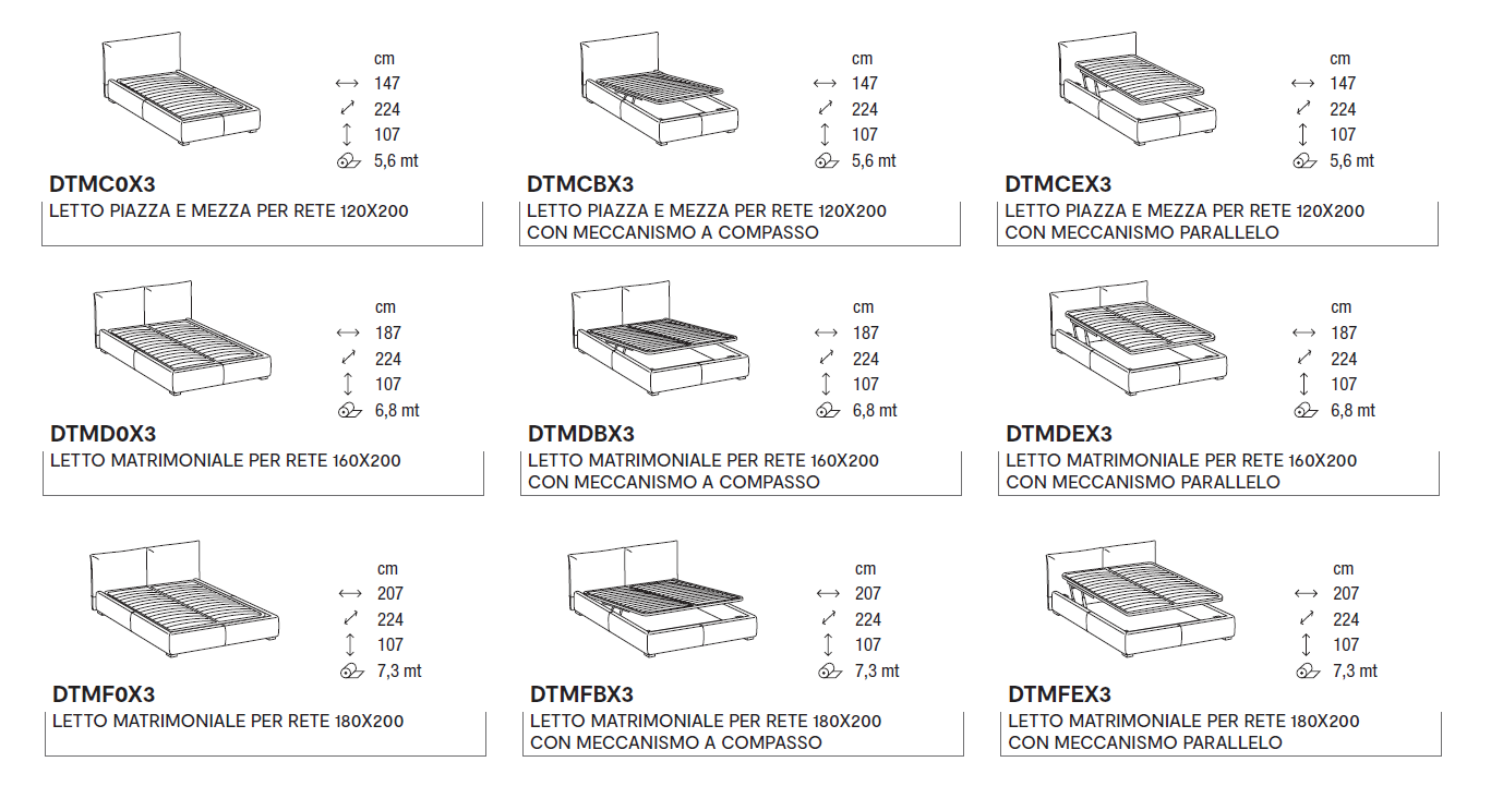 Con possibilità di avere il letto fisso o con contenitore con meccanismo a scelta tra quello a compasso e quello parallelo.