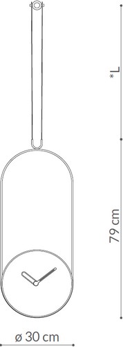 Orologio Colgante di Nomon con asta metallica curva in ottone o finitura nera, e piatto in noce o marmo in varie finiture. Istallazione a parete o a soffitto per un effetto unico.