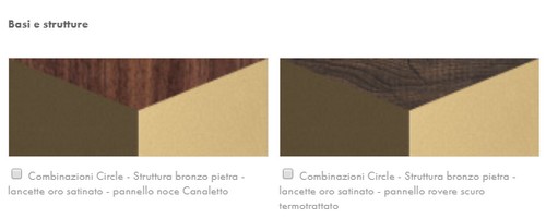 • B   Struttura in metallo laccato bronzo pietra/ lancette oro satinato; pannello  in legno Rovere Scuro Termotrattato