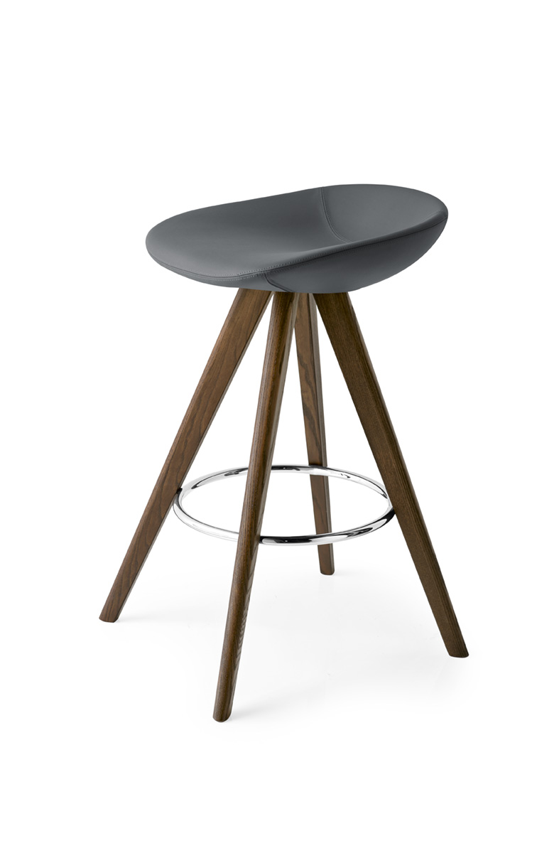 Palm CS1811 è uno sgabello pensato per adattarsi a ogni situazione di arredo. La seduta ergonomica è realizzata in materiale schiumato, che offre il massimo comfort di seduta. Basamento in legno a 4 gambe coniche con elegante poggiapiedi in metallo cromato. Rappresenta un’ottima scelta in cucina o in un lounge bar.