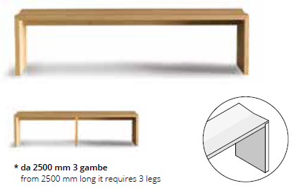 NB. Le panche da cm 250 in poi hanno 3 gambe