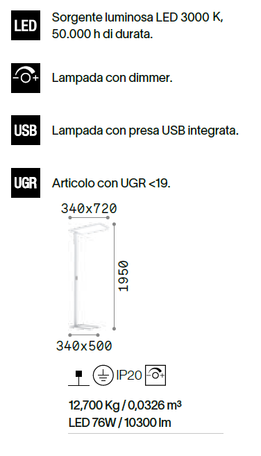 mm: L. 720 x P. 340 x H. 1950 x L. base 500 x P. base 340