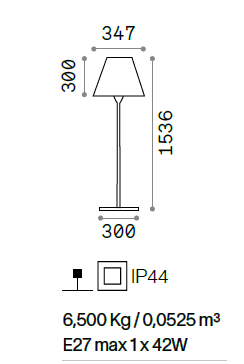 • mm: Ø 347 x Ø base 300 x H. 1536 x H. paralume 300