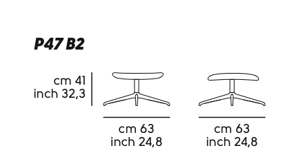 Poggiapiedi della collezione P47, ideale da abbinare alla poltrona attesa lounge P47 APA GX TS-CU. Sedile rivestito in pelle, similpelle, tessuto o tessuto cliente. Base su trespolo a quattro razze in metallo.
