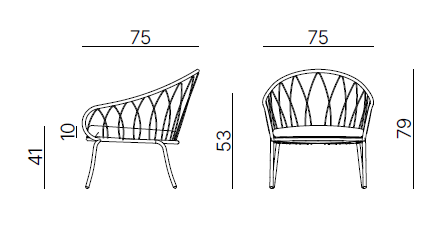 • cm: L. 75 x P. 75 x H. 79 x HS. 41 x HB. 53