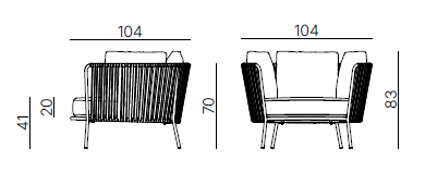 • cm: L. 104 x P. 104 x H. 83 x HS. 41 x HB. 70