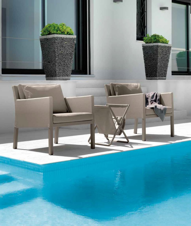 Linea Step di Talenti offre una poltrona dalla seduta comoda interamente in alluminio verniciato con rivestimento in textilene. Sullo schienale ci sono morbidi cuscini che avvolgeranno la seduta. Pratico e resistente per durare nel tempo negli ambienti esterni, questo divano darà un tocco di eleganza ai vostri giardini